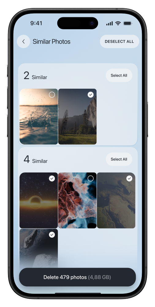 Identify and remove duplicate or similar photos and videos to free up space